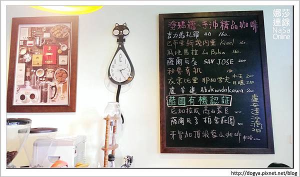 櫃台旁,有個小黑板寫了手沖精品咖啡,但我對咖啡沒研究,所以不太懂,